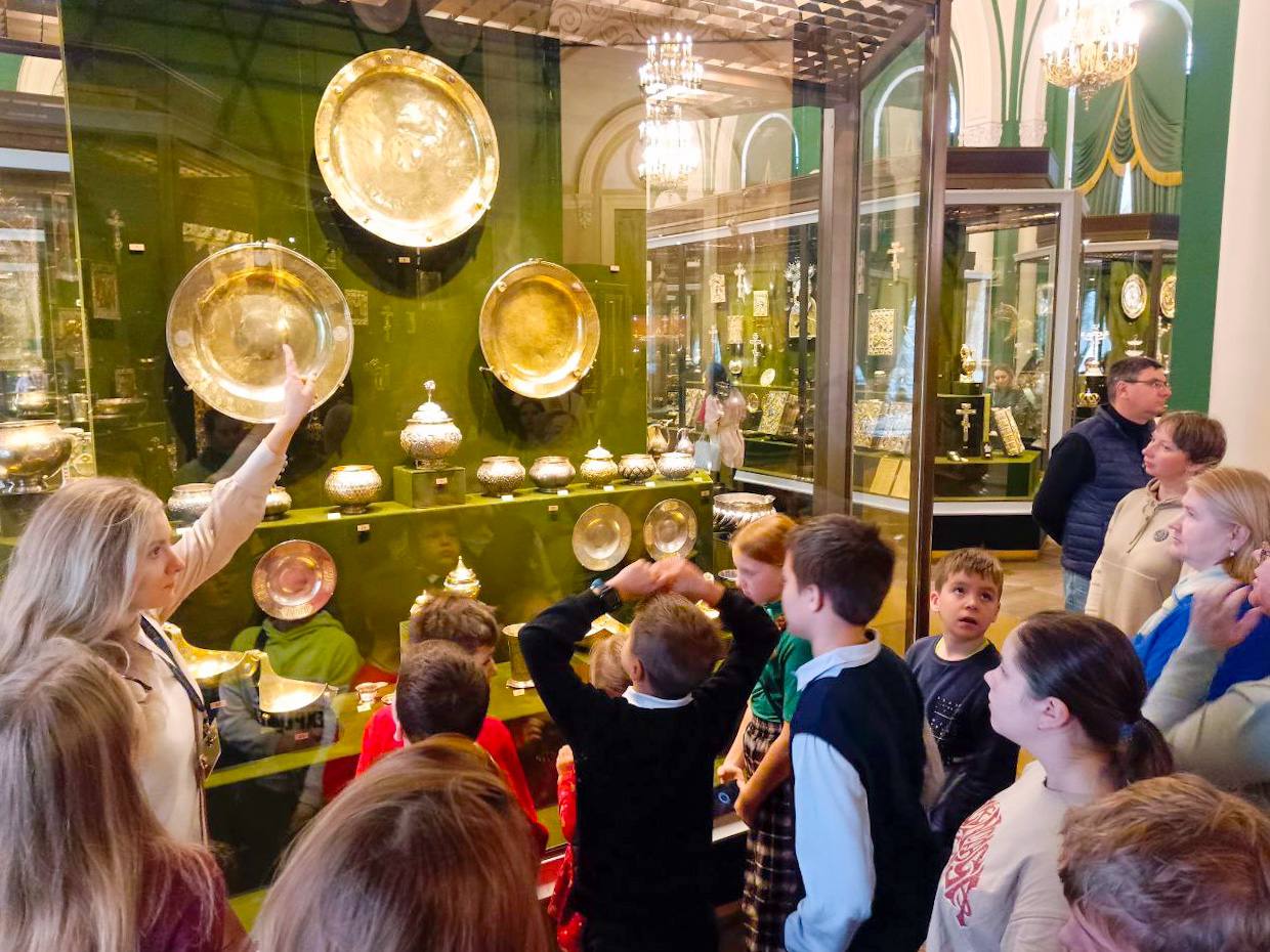 27 октября 2024 года воспитанники воскресной школы при храме иконы Божией Матери Живоносный Источник в Бибиреве вместе с родителями и педагогами посетили Московский Кремль и Оружейную палату.