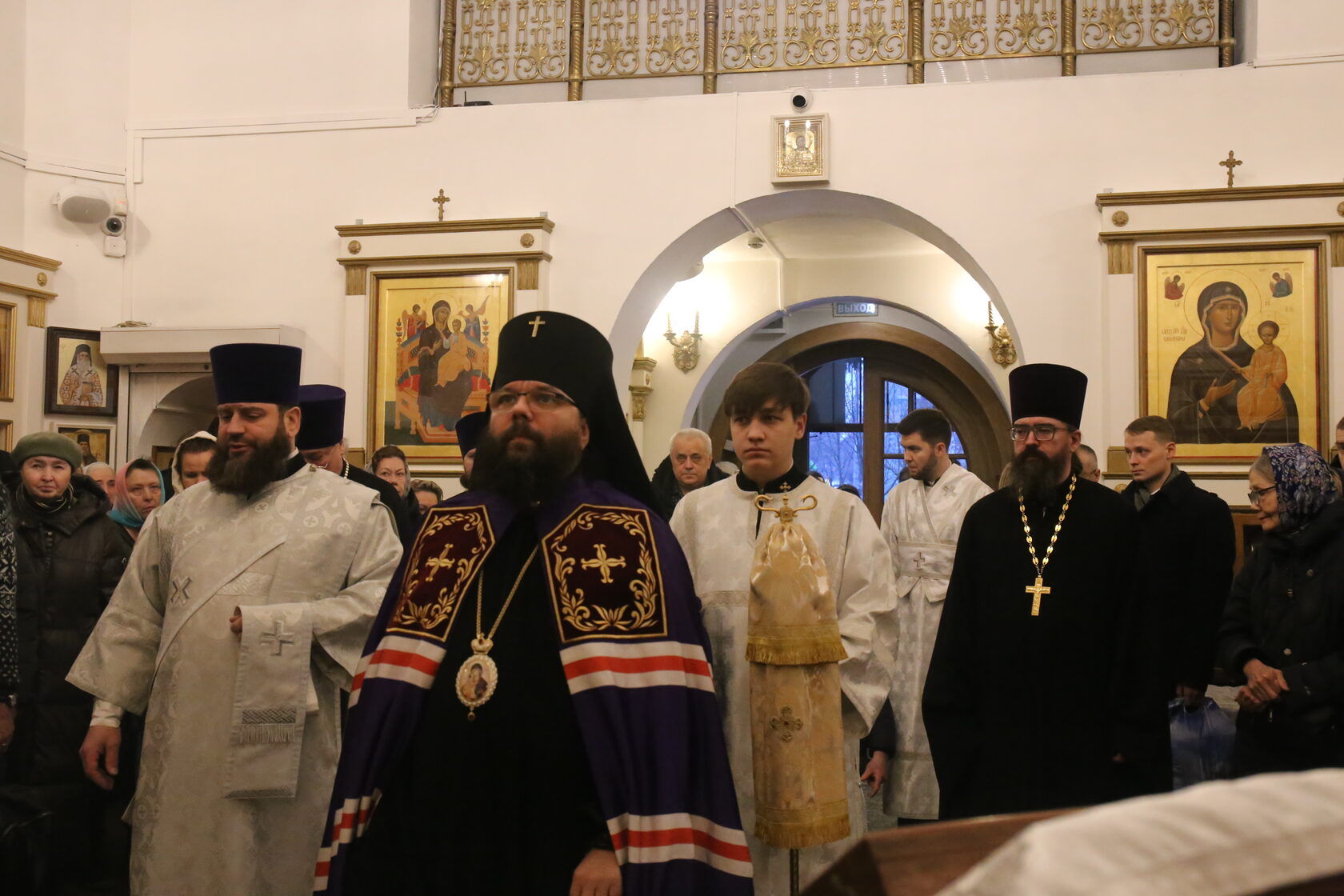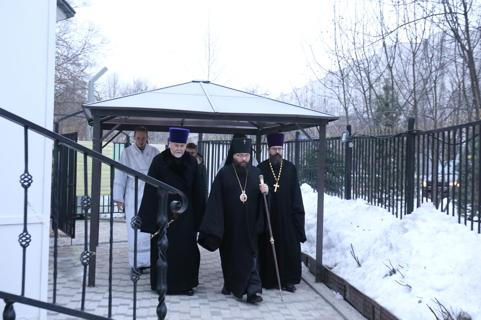Его Высокопреосвященству сослужили благочинный храмов Сергиевского церковного округа г. Москвы, настоятель храма святых мучеников Адриана и Наталии в Бабушкине г. Москвы, протоиерей Анатолий Алефиров; настоятель нашего храма иерей Виктор Зайцев; клирик храма святых мучеников Адриана и Наталии в Бабушкине иерей Георгий Мицинский и клирик нашего храма иерей Андрей Кудрин.