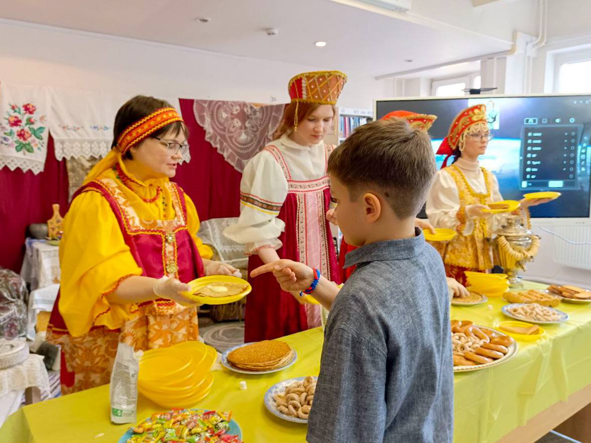 В субботу сырной седмицы воспитанники воскресной школы при нашем храме приняли участие в празднике Масленицы, который был организован в библиотеке.