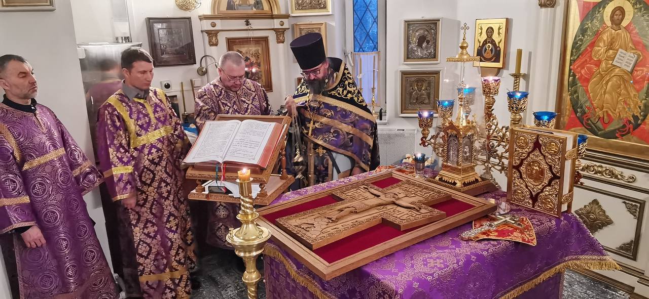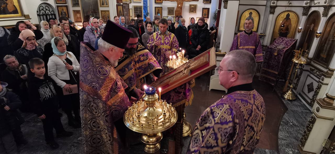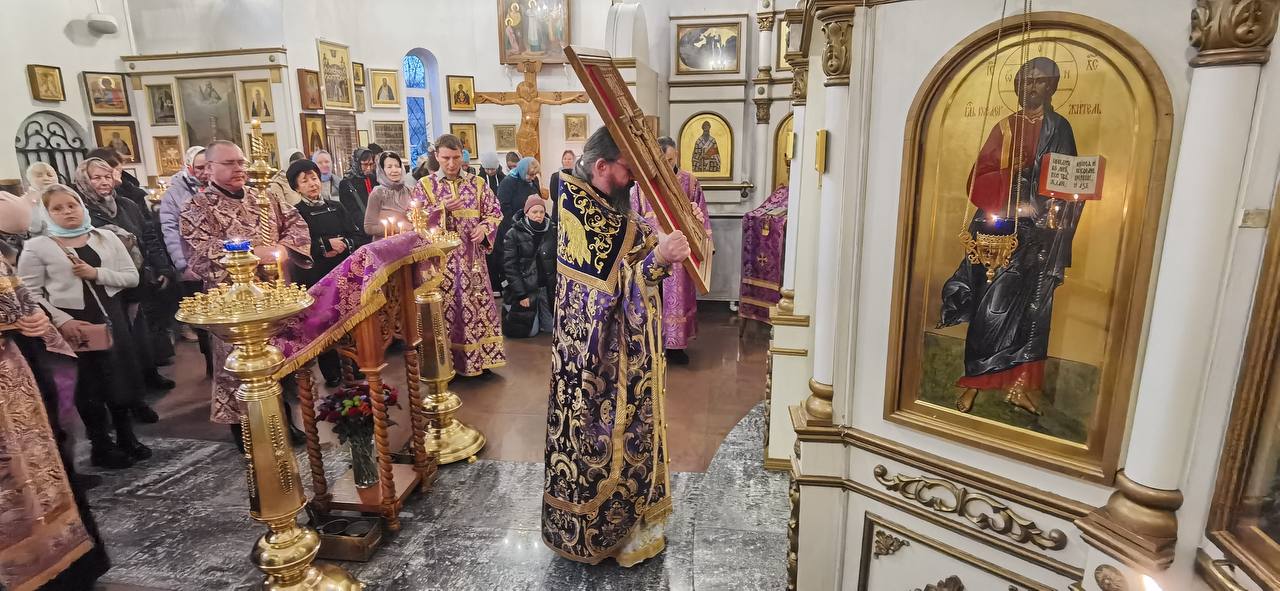В cубботу вечером на всенощном бдении в центр храма торжественно выносится Животворящий Крест Господень – напоминание о приближающейся Страстной Седмице и Пасхе Христовой.
