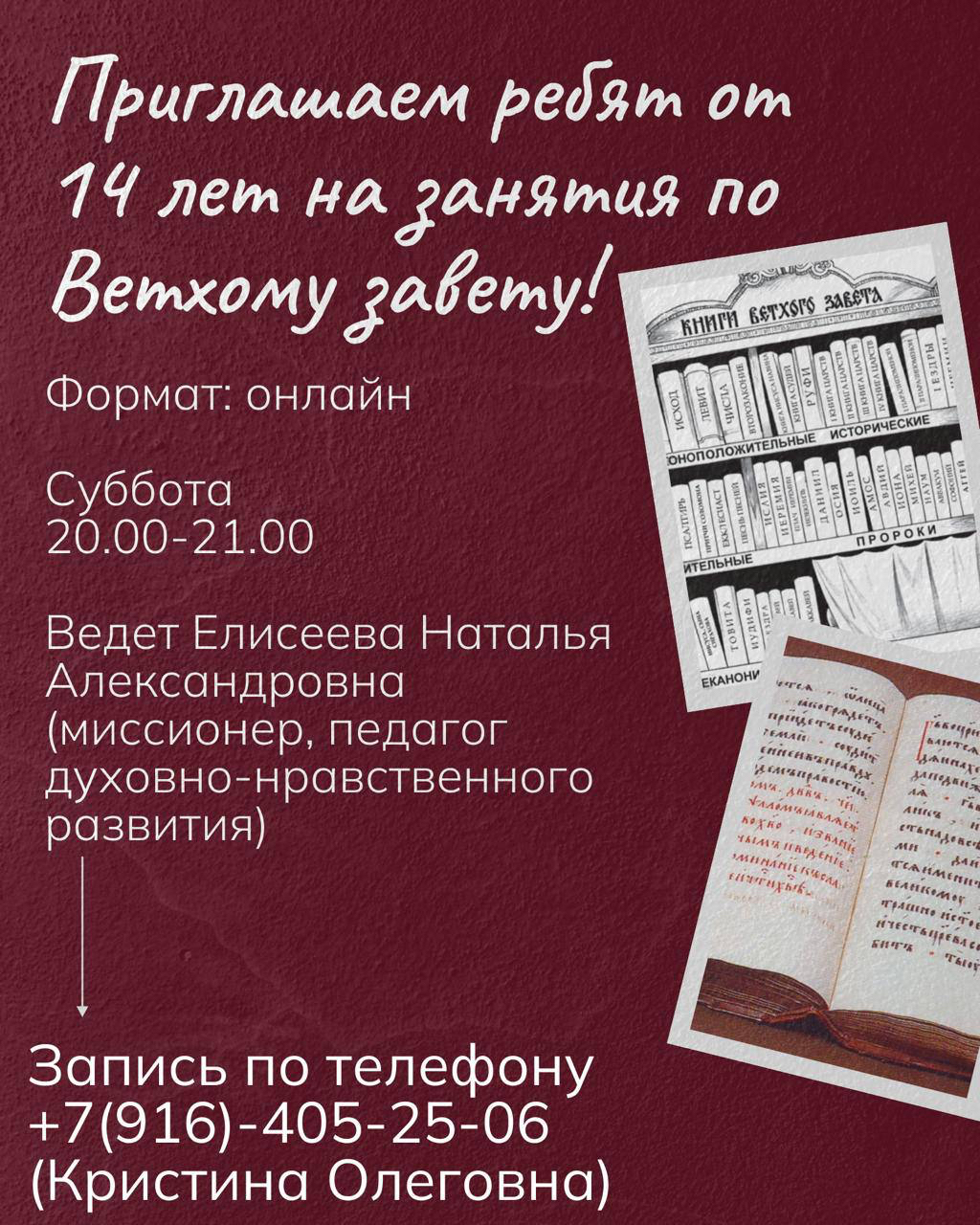Воскресная школа при храме иконы Божией Матери «Живоносный источник» в Бибиреве приглашает подростков (от 14-ти лет) на занятия по Ветхому Завету!