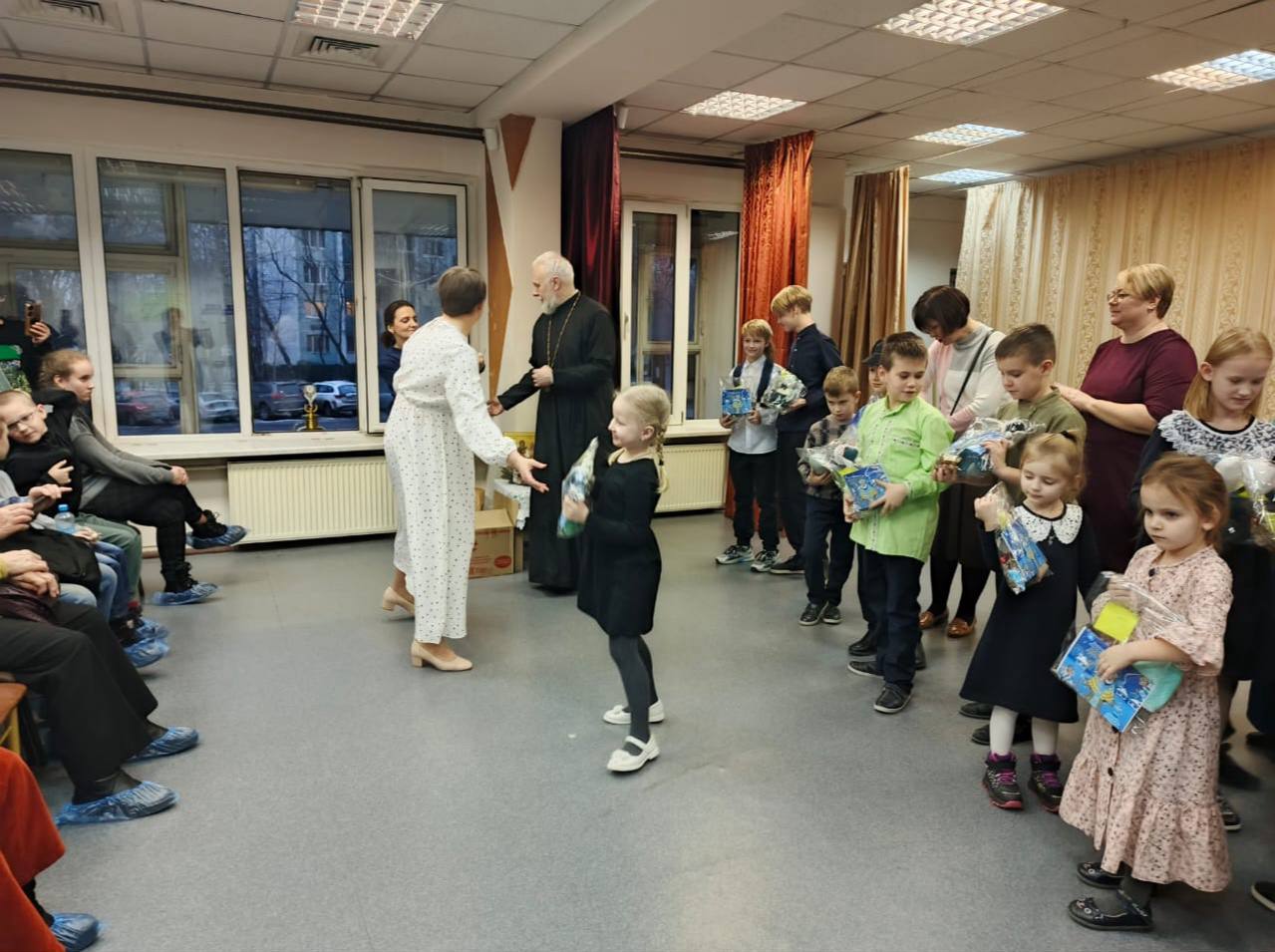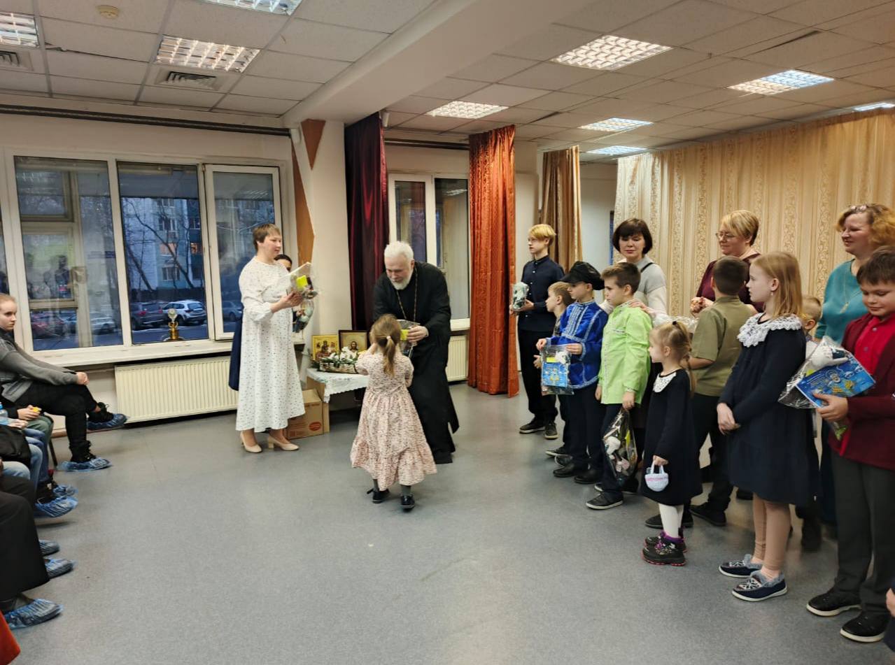 По окончании праздника клирик храма иерей Александр Колокольчиков обратился ко всем с поздравительным словом и вручил детям подарки.